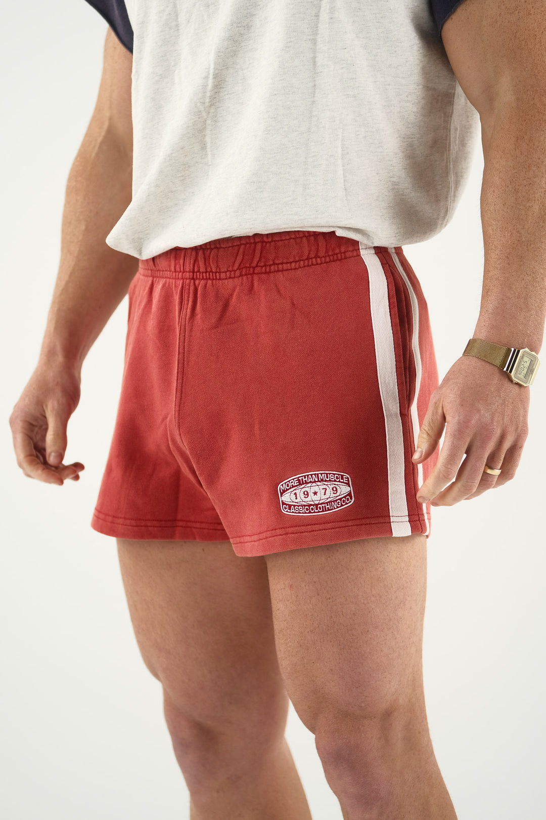 Timeless Design: Inspired by the iconic 70s aesthetics, our gym shorts feature bold colour blocking, contrasting piping, and a classic mid-rise waist. All designs are worked on until perfected by Joel and Brock at MTM headquarters.